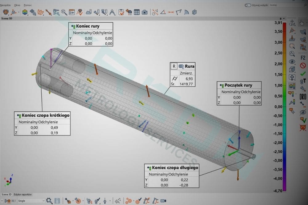 Rezultaty przedstawiliśmy w formie przejrzystego raportu wzbogaconego o model CAD, który ułatwił interpretację wyników i lokalizację ewentualnych odchyłek.