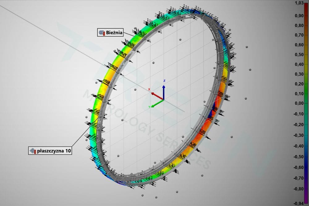 Zastosowanie skanowania 3D umożliwiło dokładne odwzorowanie powierzchni oraz kontrolę geometrii w pełnym zakresie obwodu, a nie jedynie w punktach pomiarowych.